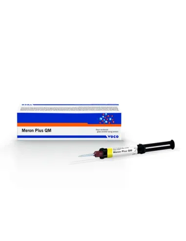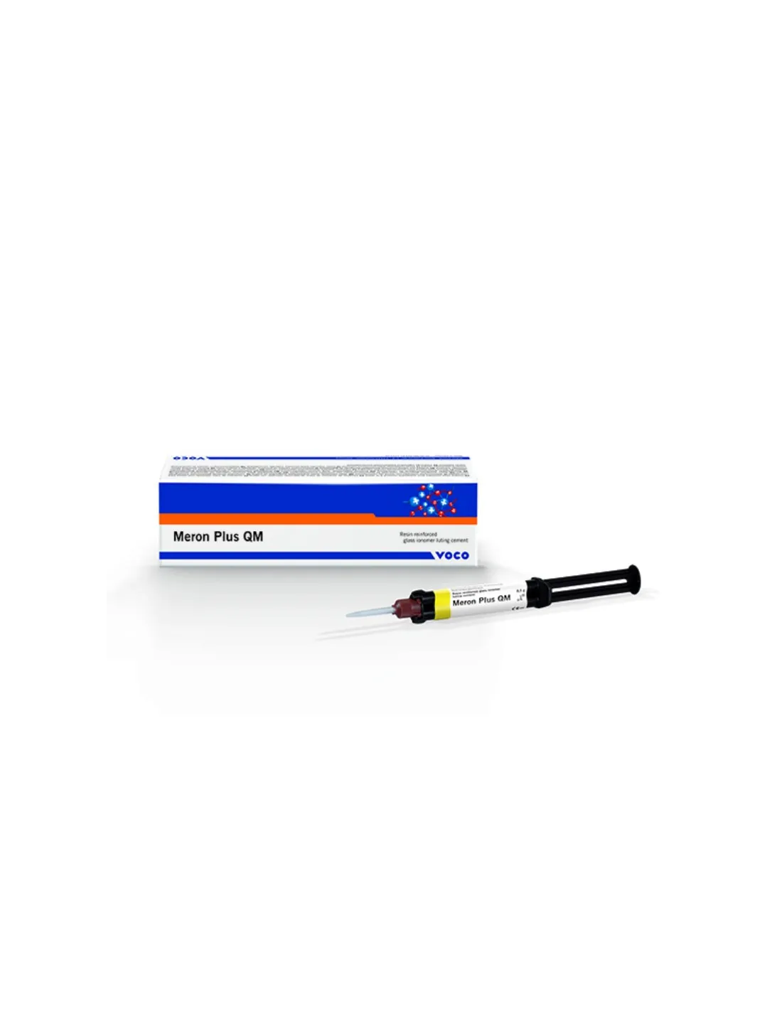 El envase de Meron Plus QM de Voco contiene: 1 jeringa QM de 8,5gr.