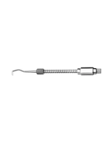 Este quita coronas tradicional posee un dispositivo de muelle que mejora el manejo del instrumento a la hora de realizar cualquier trabajo ya sea levantar puentes o coronas.