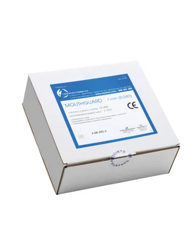 Cada caja de Mouthguard planchas termoplásticas de Clarben contiene 12 unidades, a elegir grosor entre los disponibles.