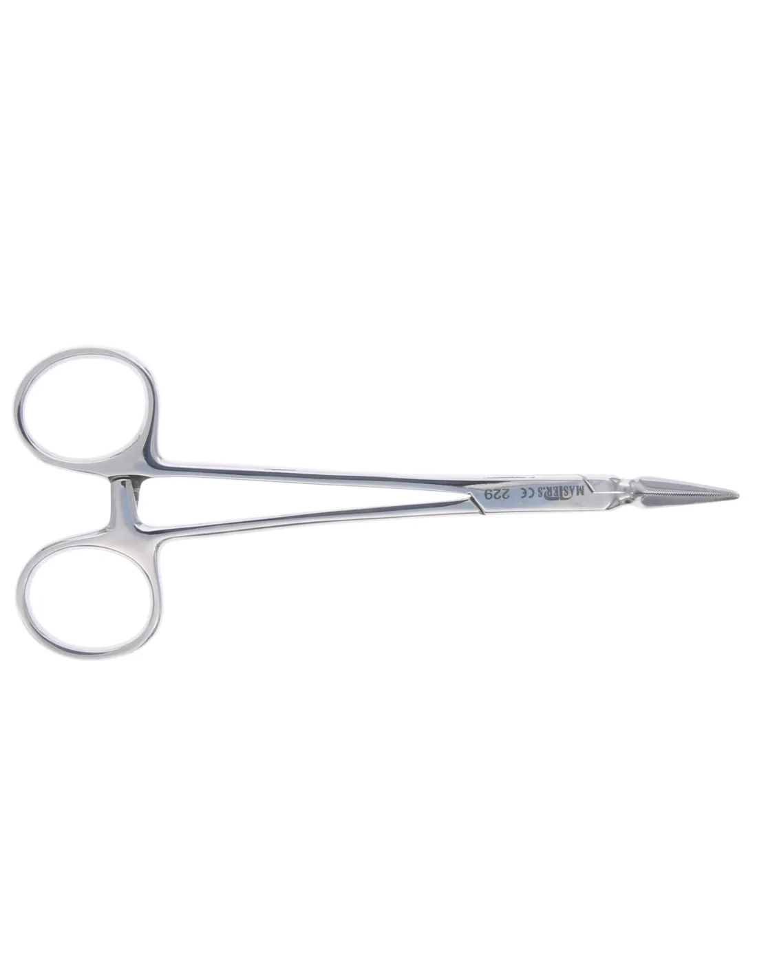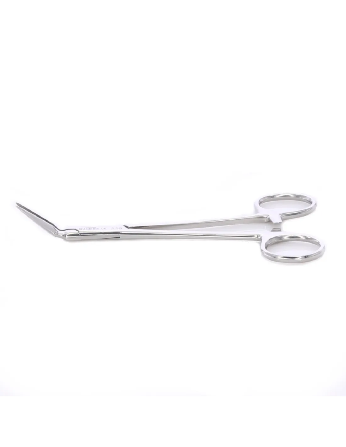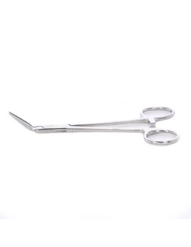 Pinza con cierre de cremallera cuya parte activa es muy fina y angulada, especial para extraer fragmentos de hueso o diente.