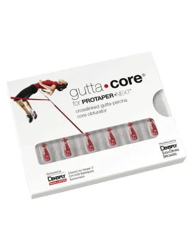 La caja de Puntas de gutapercha Gutta Core para Protaper Next de Maillefer contiene 1 blister de 6 unidades.
