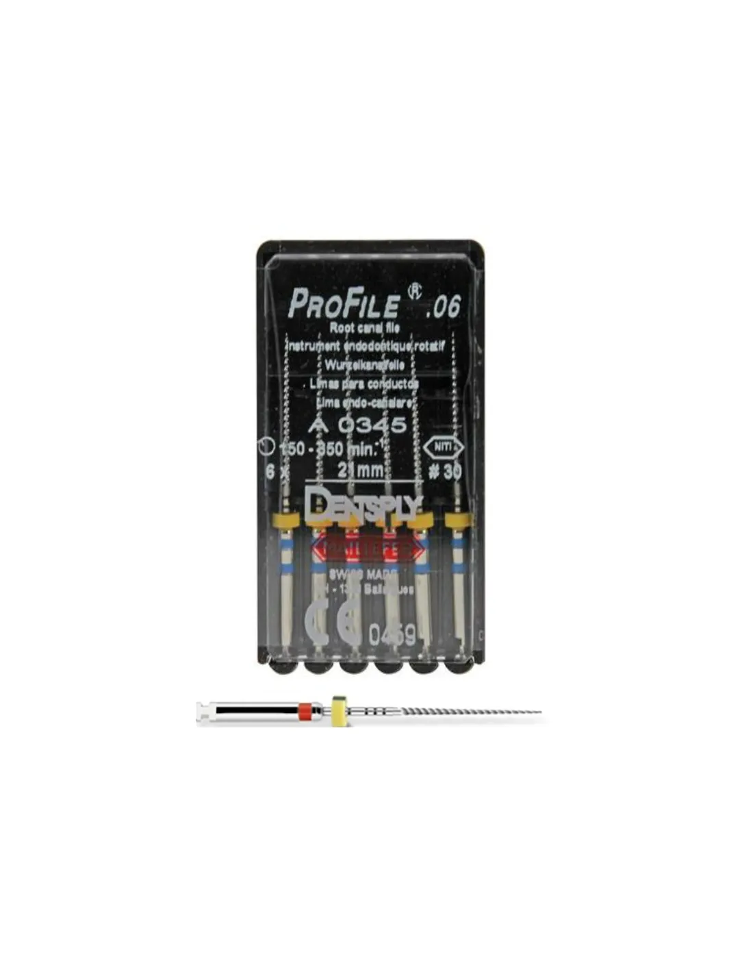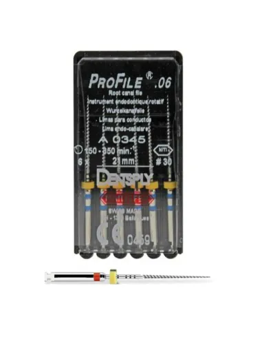Profile de Maillefer es un instrumento rotatorio fabricado con una aleación Níquel-Titanio. Su gran flexibilidad permite conformar el conducto delicadamente, sobre todo a nivel apical.