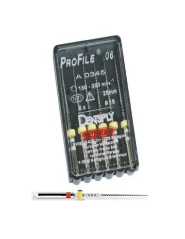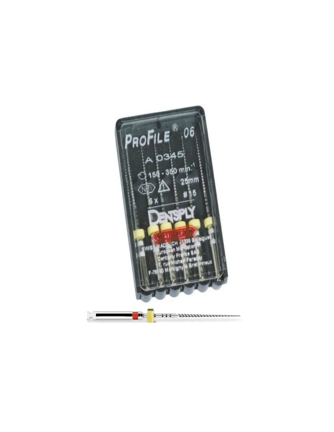 Profile de Maillefer es un instrumento rotatorio fabricado con una aleación Níquel-Titanio. Su gran flexibilidad permite conformar el conducto delicadamente, sobre todo a nivel apical.