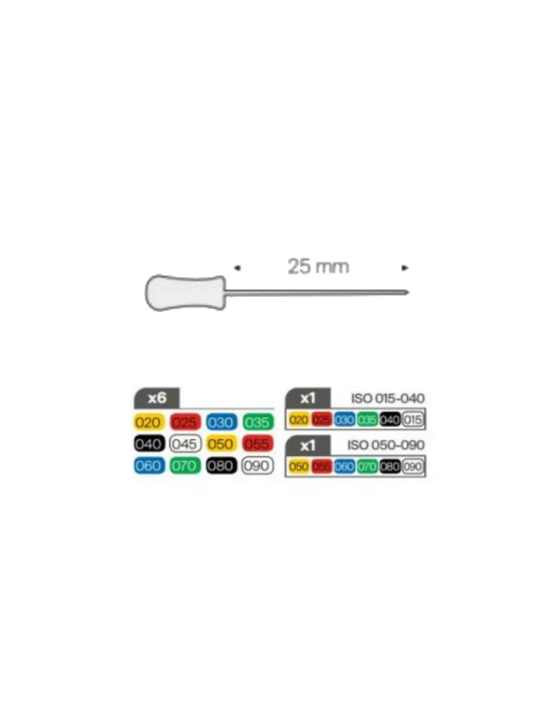 La caja de Verifier Thermafil 25mm .04 de Maillefer contiene 6 unidades, a elegir tamaño o surtido entre los disponibles.