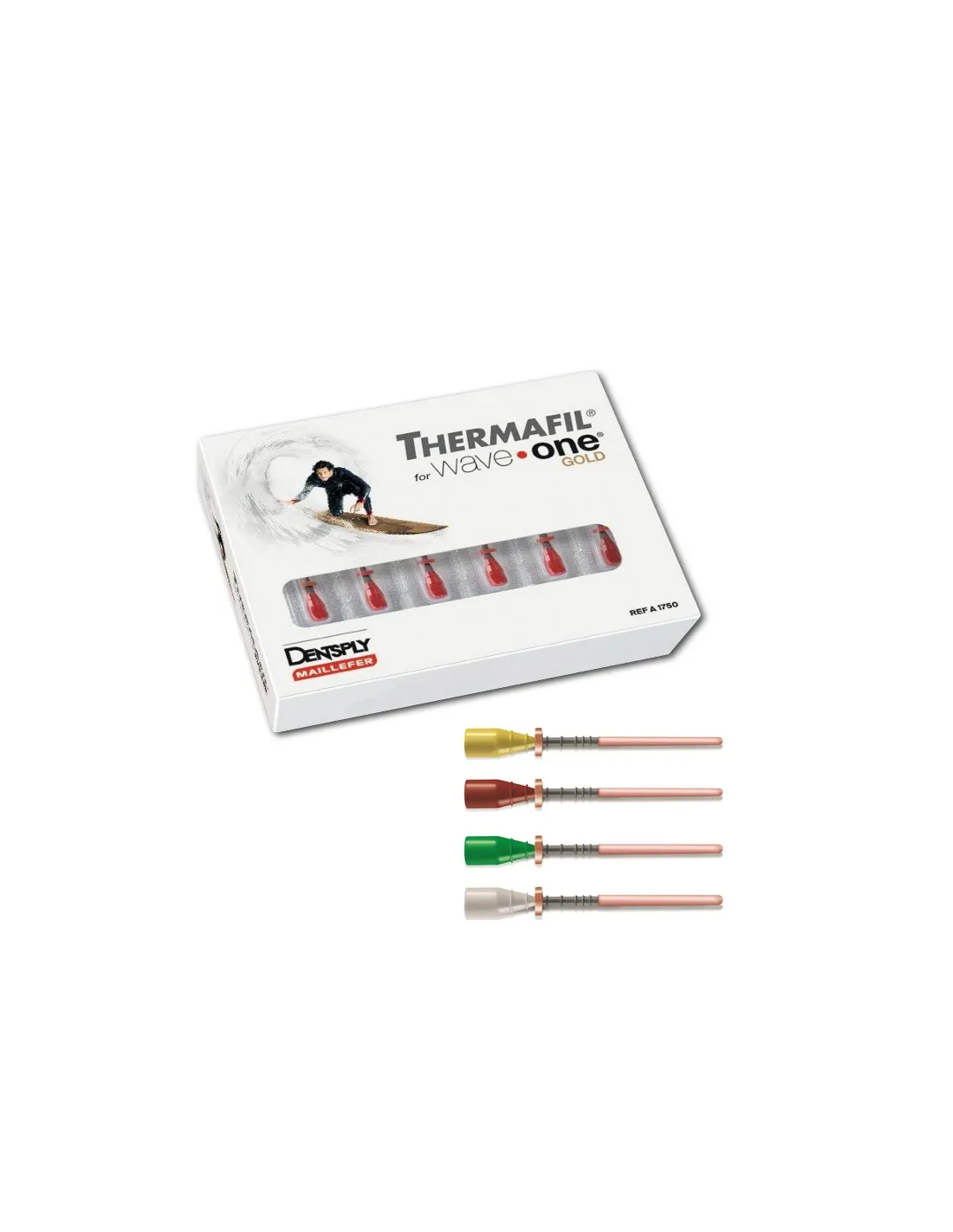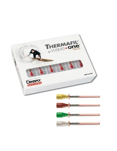 El envase de puntas de guttapercha Thermafil de Maillefer para Waveone Gold contiene 30 unidades, a elegir tamaño entre los disponibles.