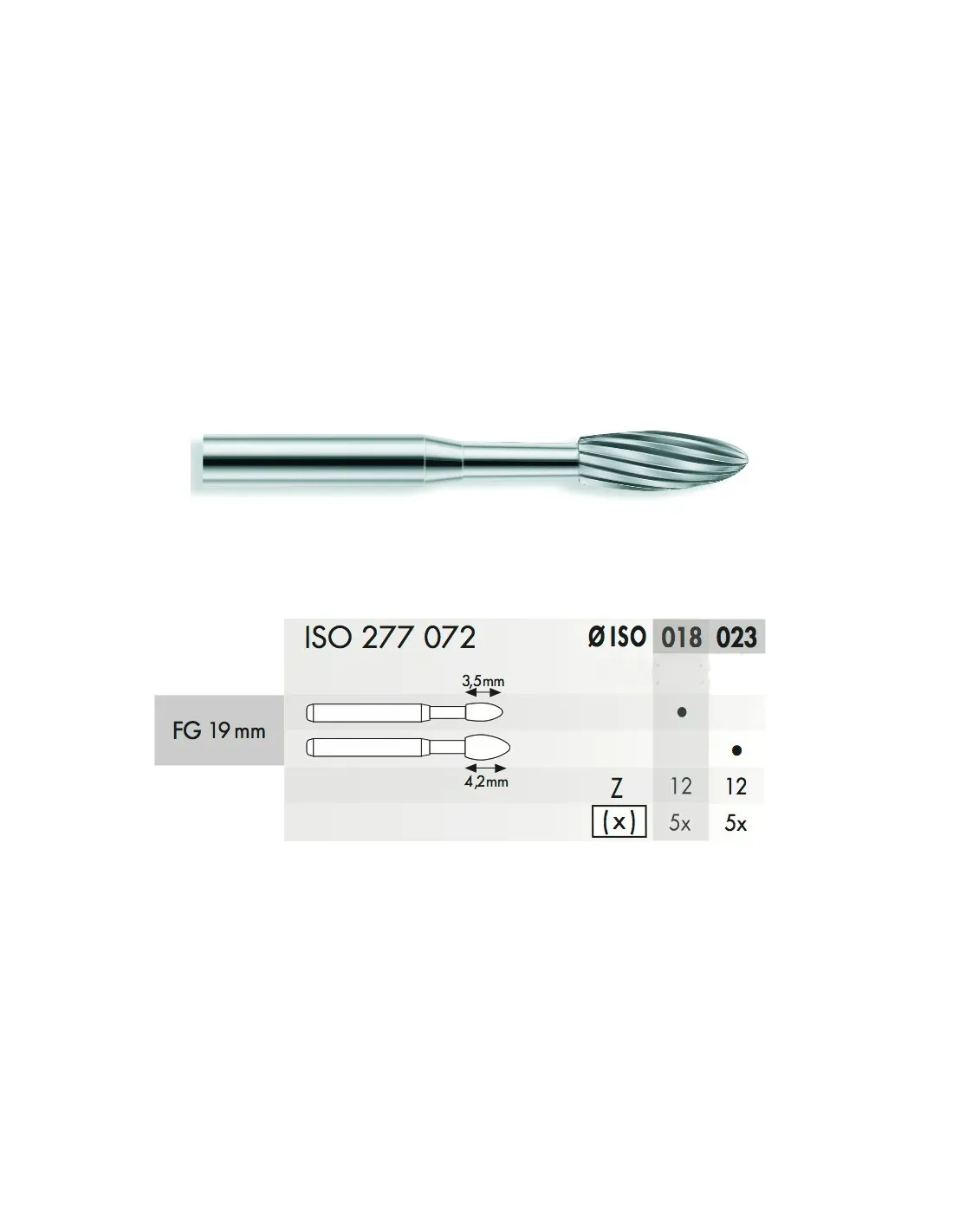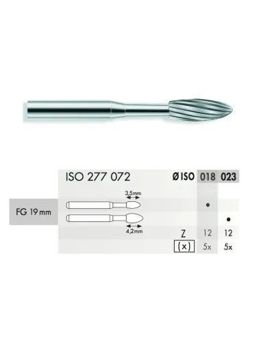 La caja de fresas huevo FG 19mm de Maillefer contienen 5 unidades, a elegir tamaño entre los disponibles.