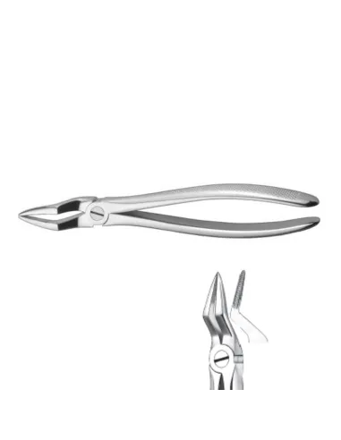 El fórceps E51A para extracción de raíces superiores presenta una parte activa angulada y más delgada que el modelo E51.