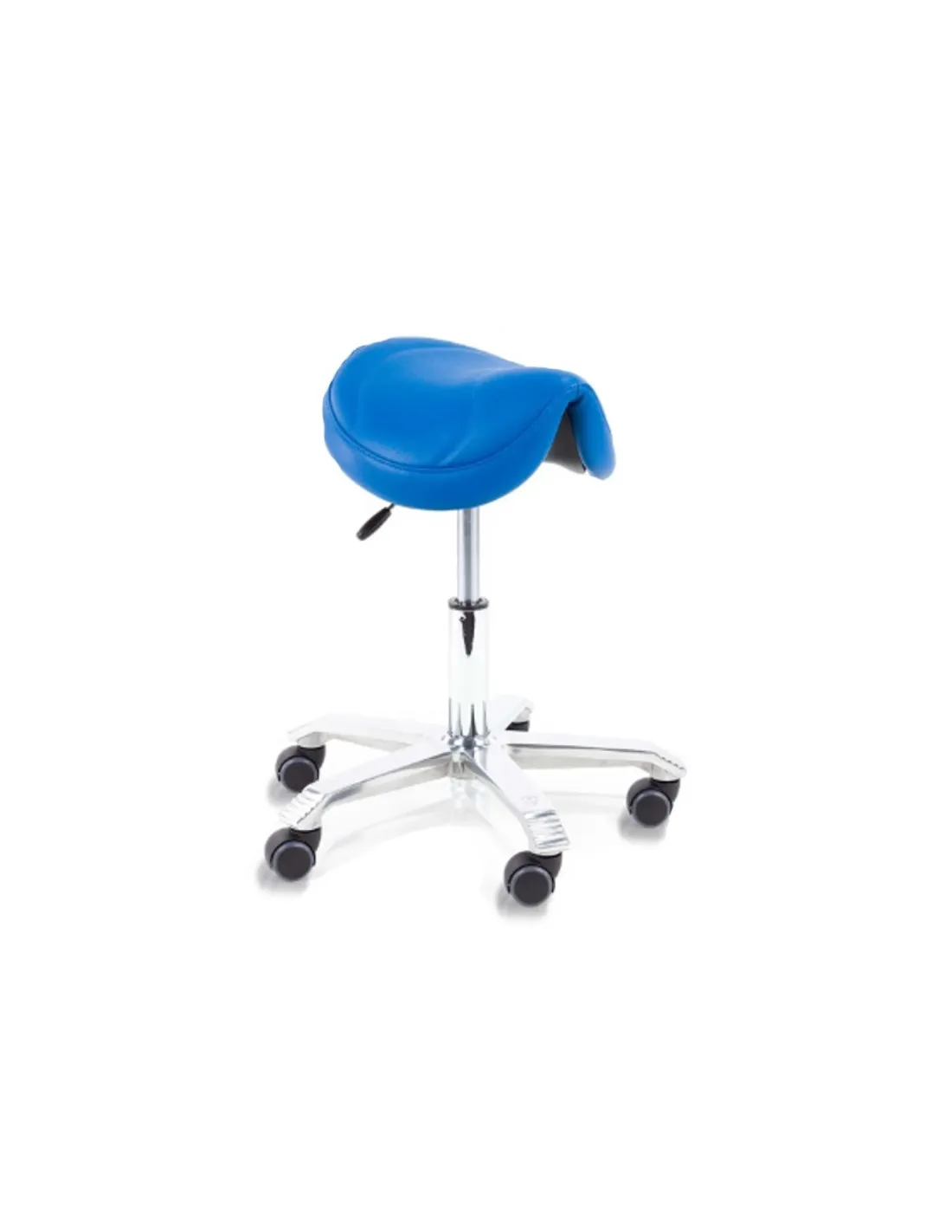 La silla ergonómica Amazone de Score Dental es una silla tipo "silla de montar" con base de aluminio tapizado con el sistema "antibacterias" que permite la limpieza con agua y jabón, no con alcohol.