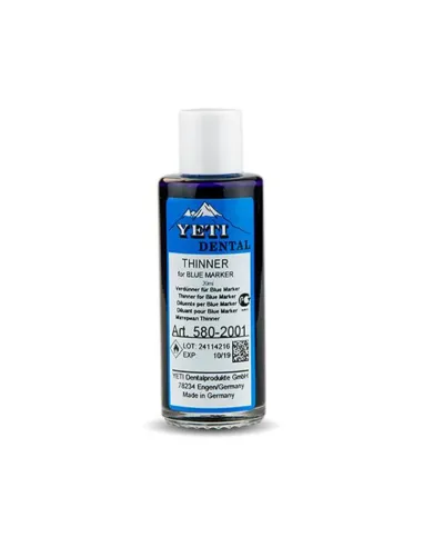 Blue Marker Thinner de Yeti Dental es un líquido diluyente para el líquido indicador de contactos prematuros Blue Marker.