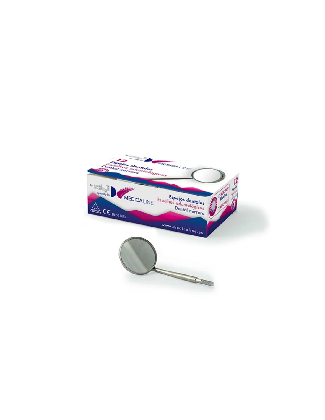 La caja de espejo dental rodio cone socket nº5 de Medicaline contiene: 12 cabezales de espejos intraorales.