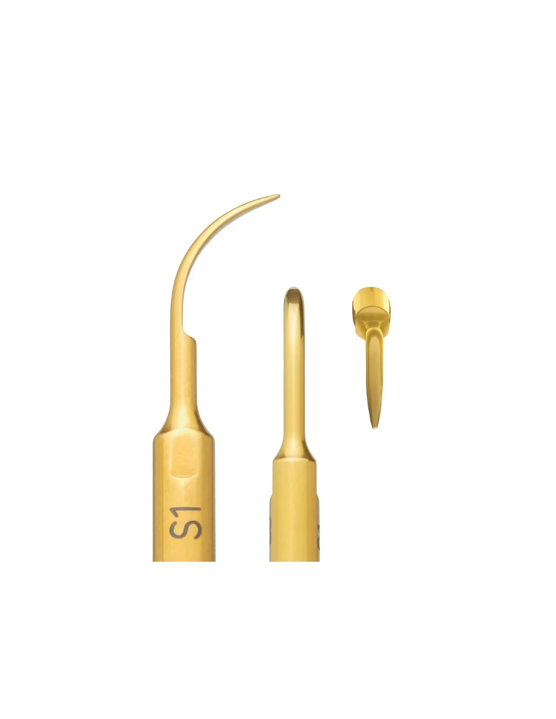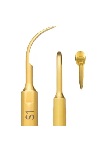 - S1 - Cureta universal con diámetro semicircular. Sección transversal semicircular para trabajar áreas grandes en toda la superficie del diente. Para la eliminación considerable de sarro.