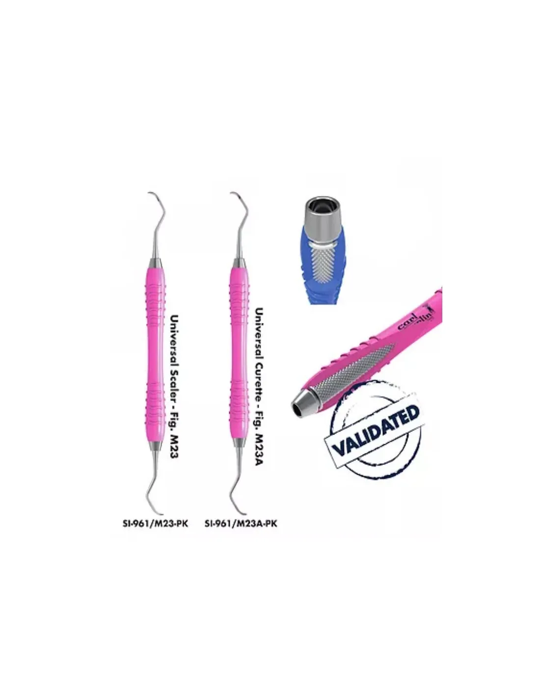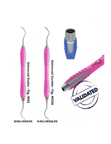 El Set Colori Silikon Rosa de Carl Martin esta compuesto por instrumentos manuales universales (scaler y cureta) con doble parte activa, de diferentes formas, indicados para realizar tratamientos de profilaxis de una forma cómoda, práctica y a la vez divertida.