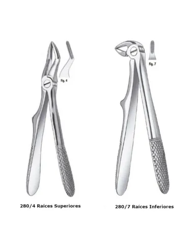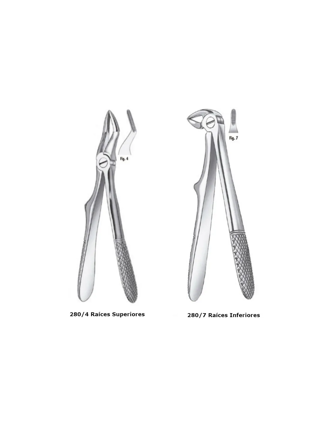 - 280/7 raíces inferiores. Parte activa con forma de pico con puntas redondeadas.
