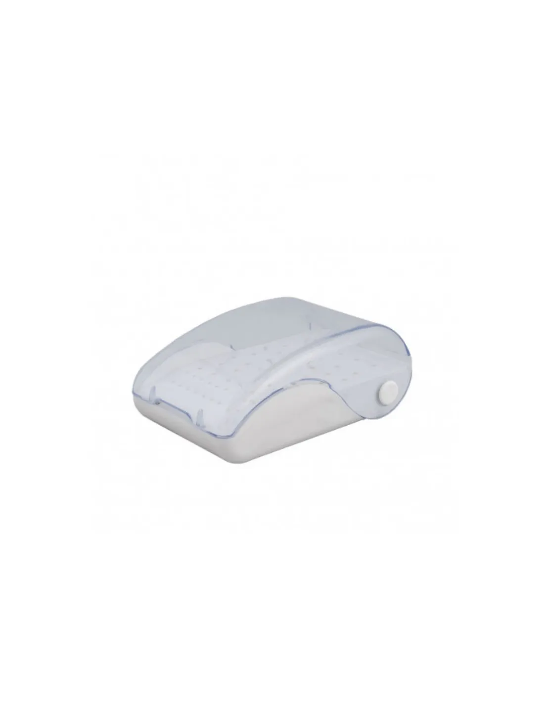 Fabricada en plástico rígido blanco con cubierta transparente