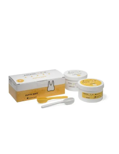 El envase del material de impresión Estesil H2TOP de Tokuyama Dental contiene 2 x 300 ml + 2 cucharas de medición.