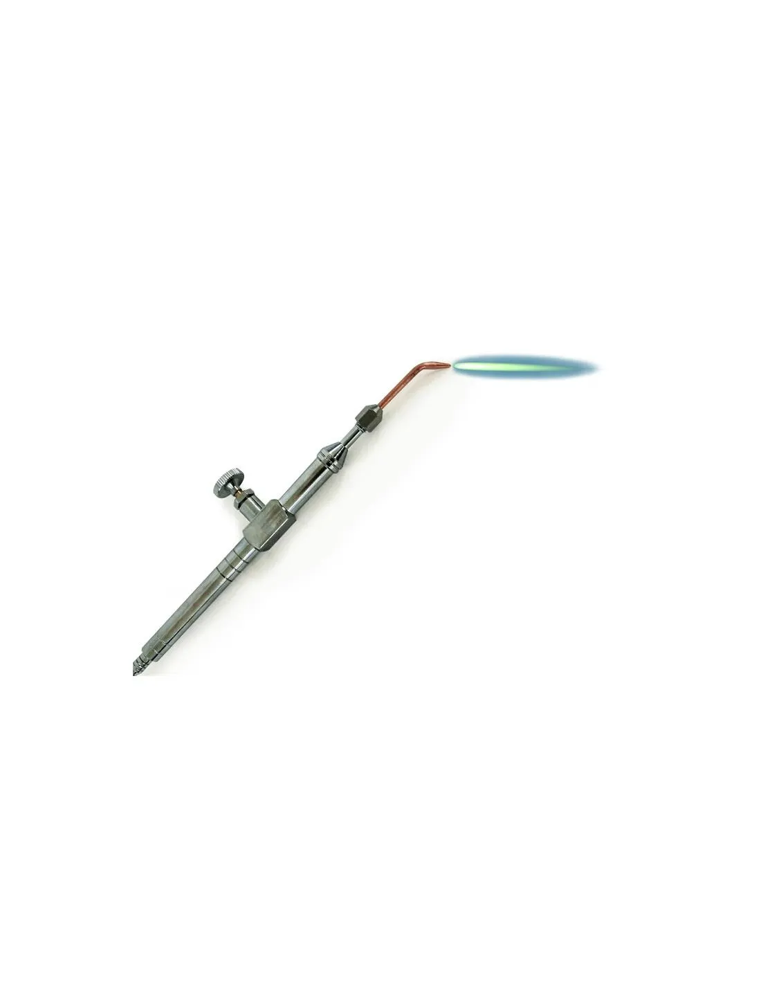 Este soplete soldador Oxhídrico dispone de una llama regulable en intensidad mediante un práctico grifo. Válvula de anti-retroceso integrada.