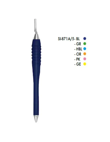 Este mango para bisturí pertenece a la gama Colori Silikon ya que está fabricado en silicona termoestable y antideslizante, con sellado antibacteriano, de gran calidad con núcleo de acero inoxidable ligero. Los ejes presentan una flexibilidad estándar. Además, el color de su mango permite una rápida identificación entre otros de la misma gama.