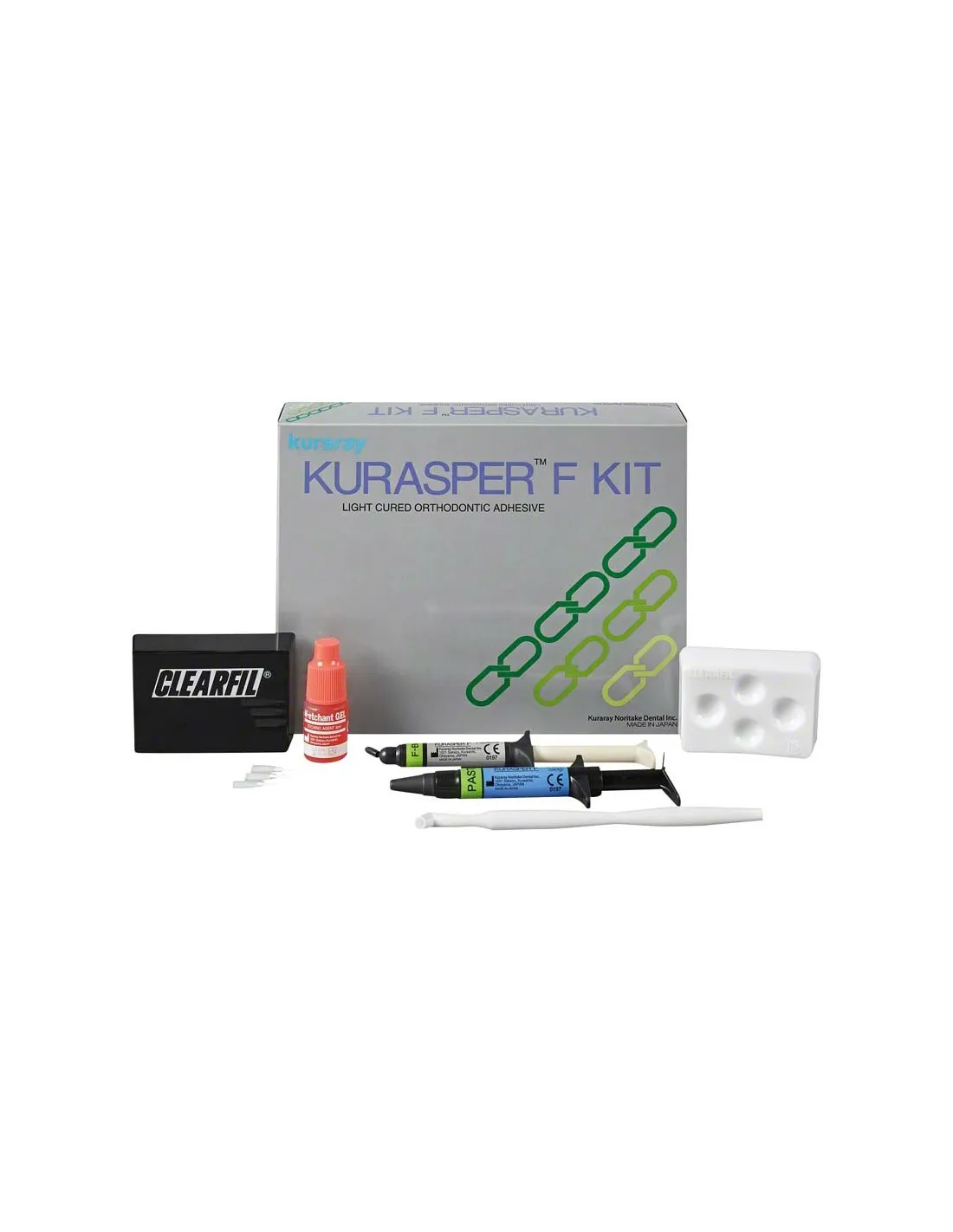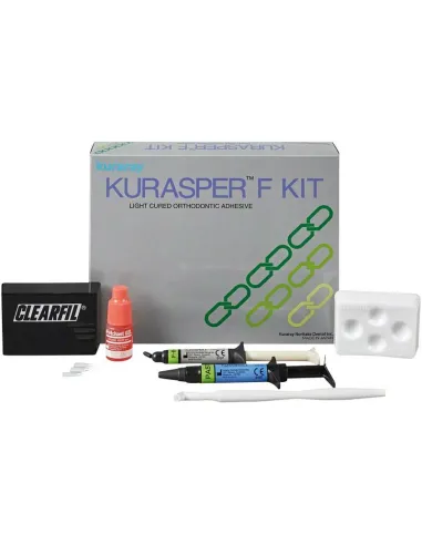 Kurasper F de Kuraray es un adhesivo fotopolimerizable (bond y pasta), indicado para la adhesión directa de brackets de metal, cerámicos y cerámicos con retención mecánica.