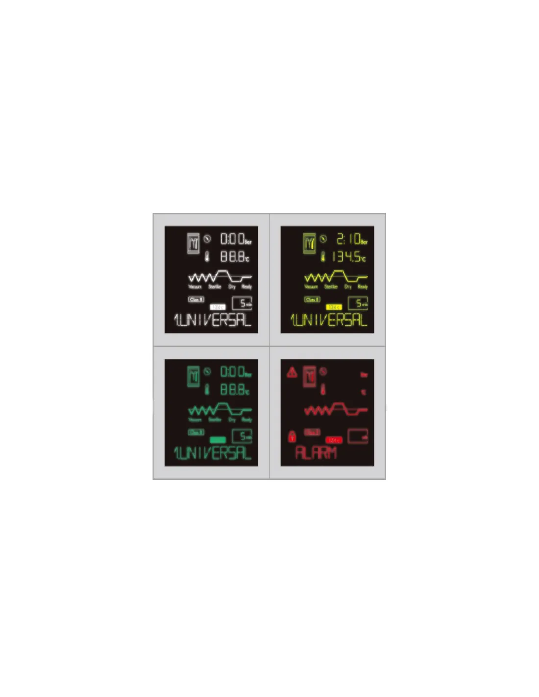 Su panel de control presenta un diseño elegante y de excelente visibilidad. Fácil de utilizar e interpretar gracias a un código de colores que cambia según la fase del proceso en la que se encuentre, lo que aumenta la fiabilidad de esterilización.