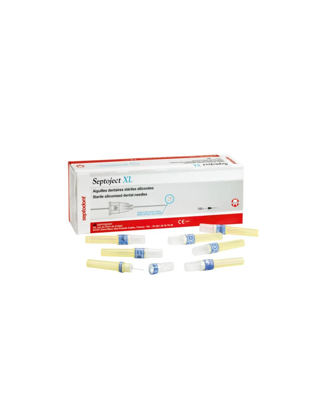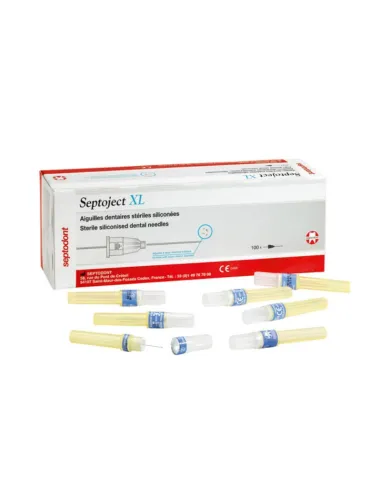 El envase de Septoject XL de Septodont contiene: 100 agujas dentales estériles.