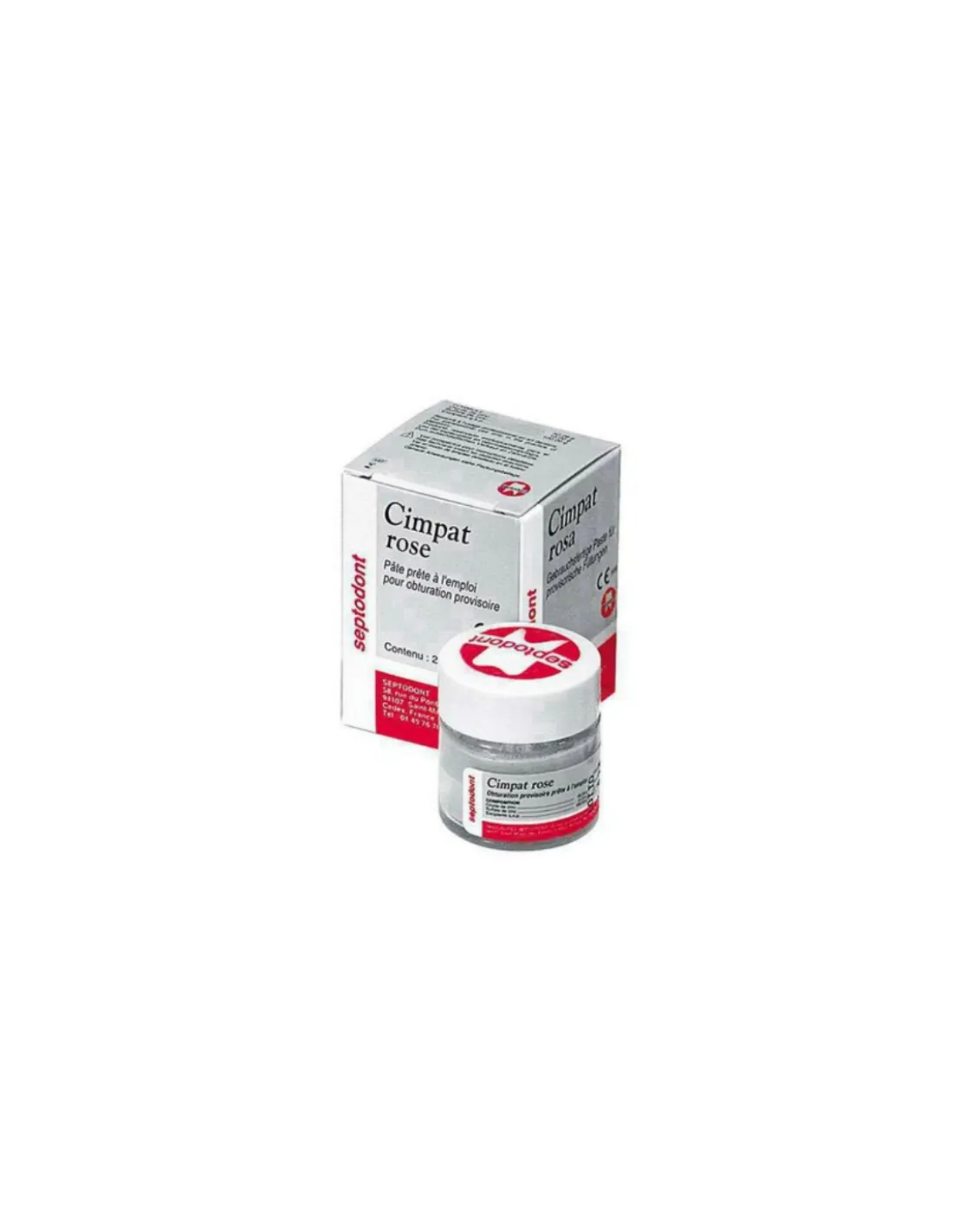 Cimpat Rosa de Septodont se presenta en frasco de vidrio de 25g.