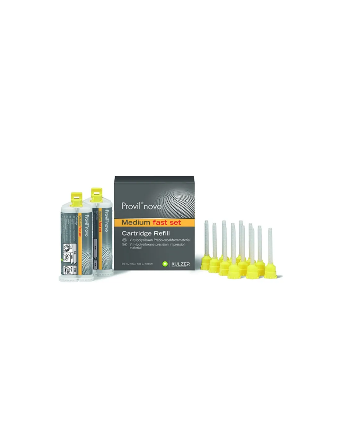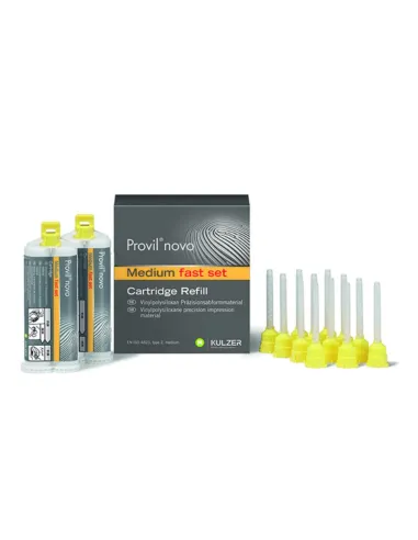 Provil Novo de Kulzer es una silicona con unas excelentes propiedades, indicada para la replica de superficies con alta precisión, manteniendo las desviaciones por debajo de un 0,1 µm. La impresión se puede emplear para realizar un molde y obtener un segundo positivo, sin perder calidad.