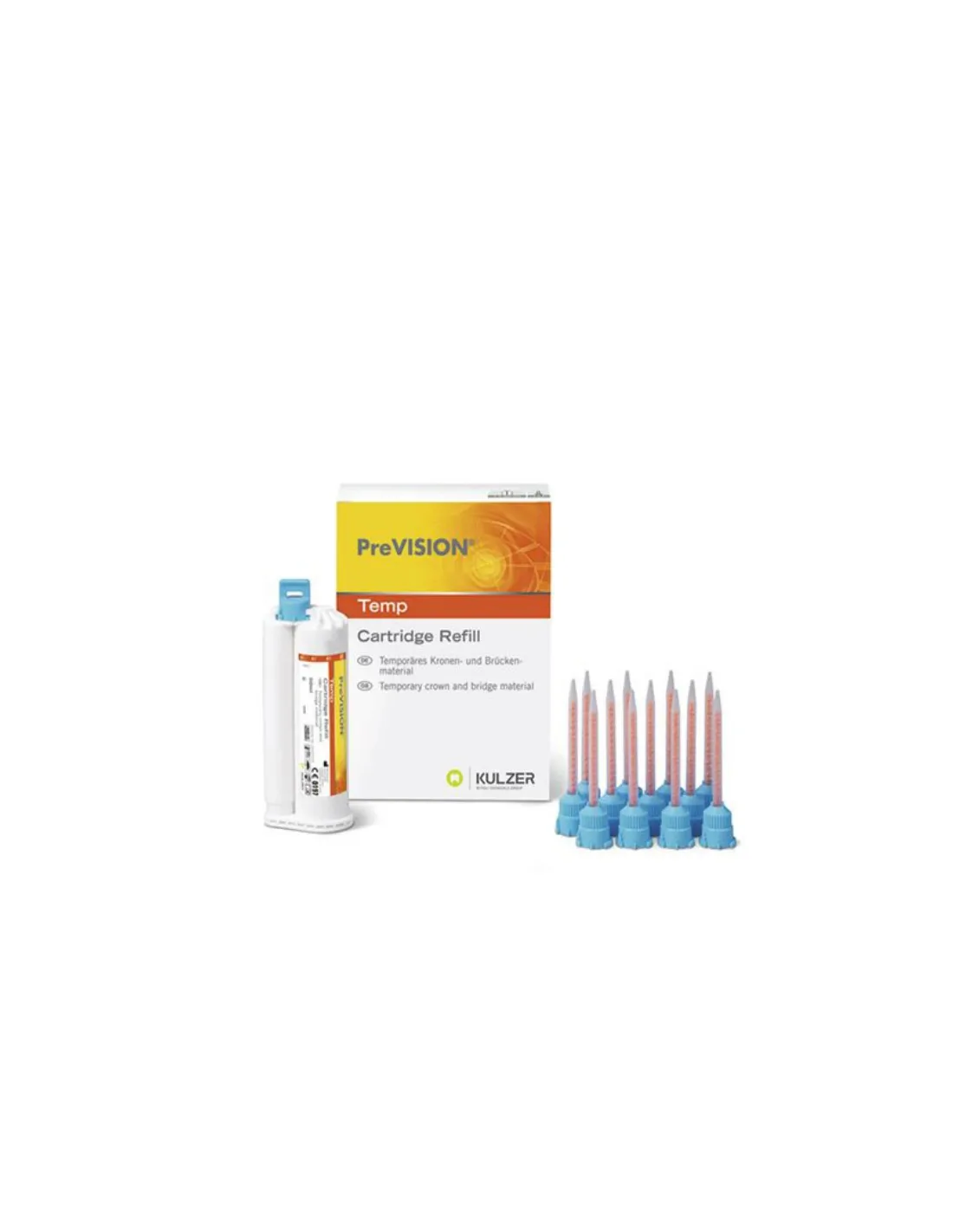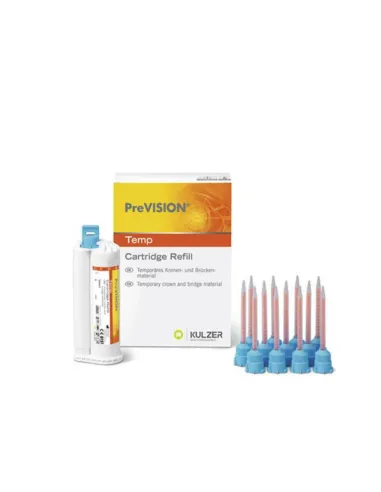 PreVISION Temp de Kulzer es un material de restauración provisional de automezcla de 2 componentes que contienen metacrílatos multifuncionales.