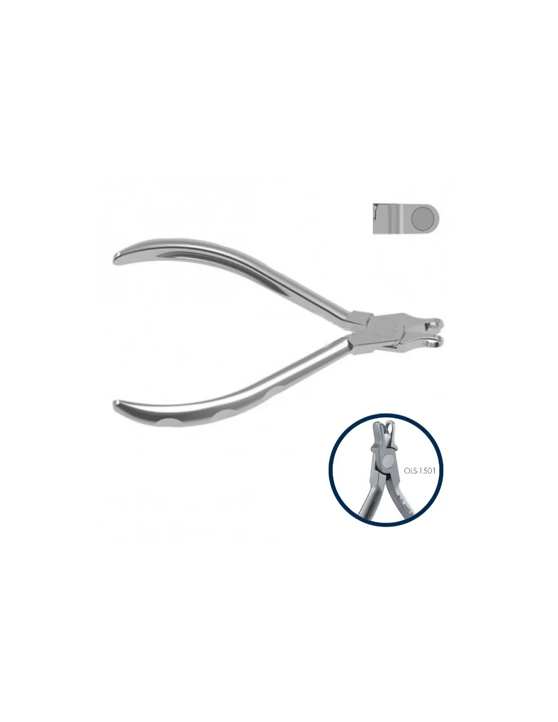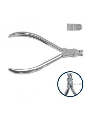 El instrumento dental para Ortodoncia OLS-1501 de Carl Martin es un alicate para realizar perforaciones huecas con forma de media luna en el área de los soportes o botones unidos.