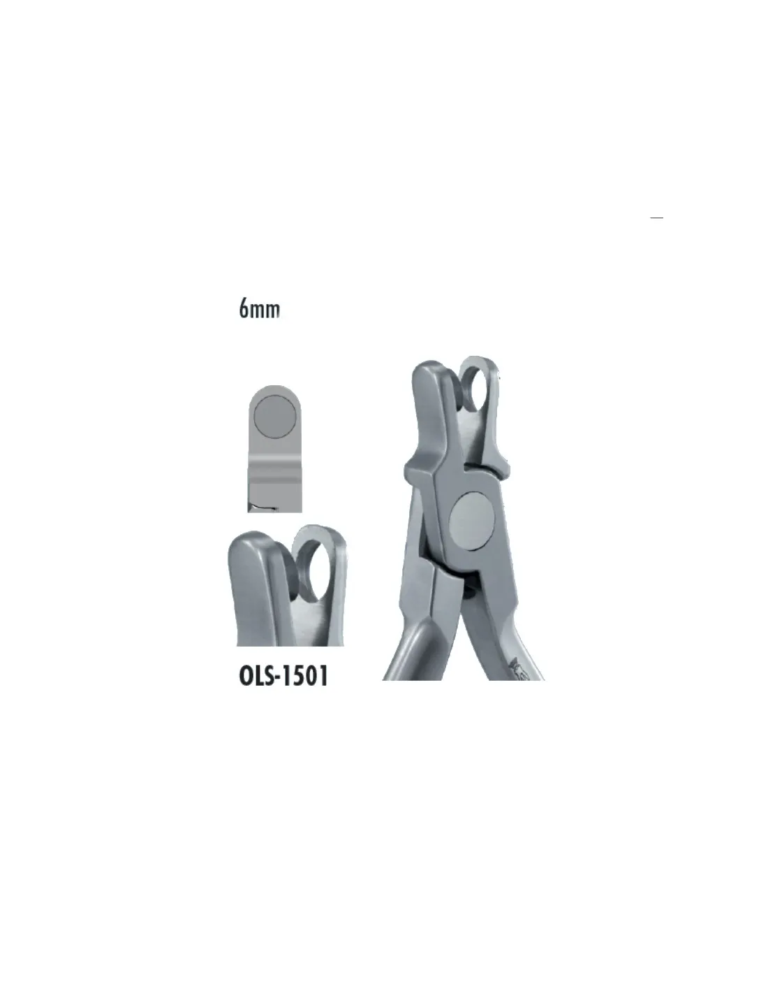 - OLS-1502 - alicate punzón para realizar una muesca en forma de gota en el margen gingival. Gracias a la forma de gota facilita un acoplamiento fiable y seguro de los elásticos, incluso para el paciente. Con insertos de carburo de tungsteno, que le aporta aporta dureza y un gran poder de corte.
