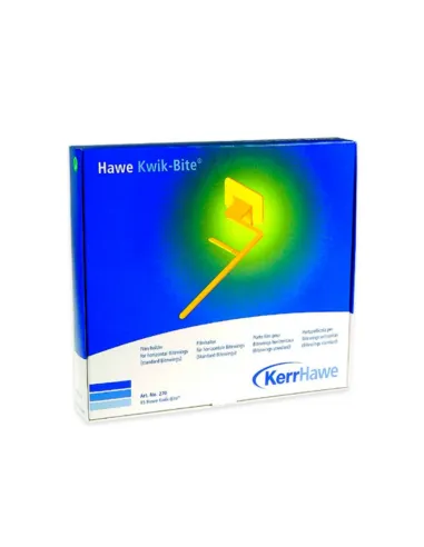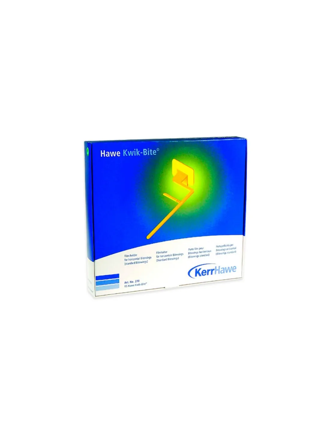 Kwik-Bite de Kerr Hawe Neos es un portapelícula y soporte para placas de fósforo. Indicado para evaluar caries proximales, excesos y vacíos, márgenes de coronas y sarro en los espacios interdentales. También para mordidas horizontales (mordidas estándar) y evaluar el estado del borde alveolar.