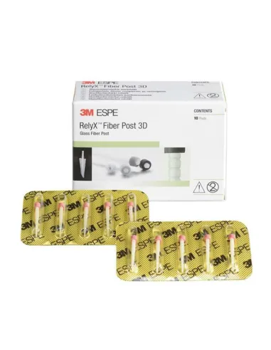 Relyx Fiber Post 3D de 3M Espe es el poste de fibra de vidrio 3D. Gracias a la macrorretención coronal 3D garantiza una mayor retención mecánica del material de reconstrucción de muñón.