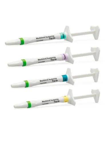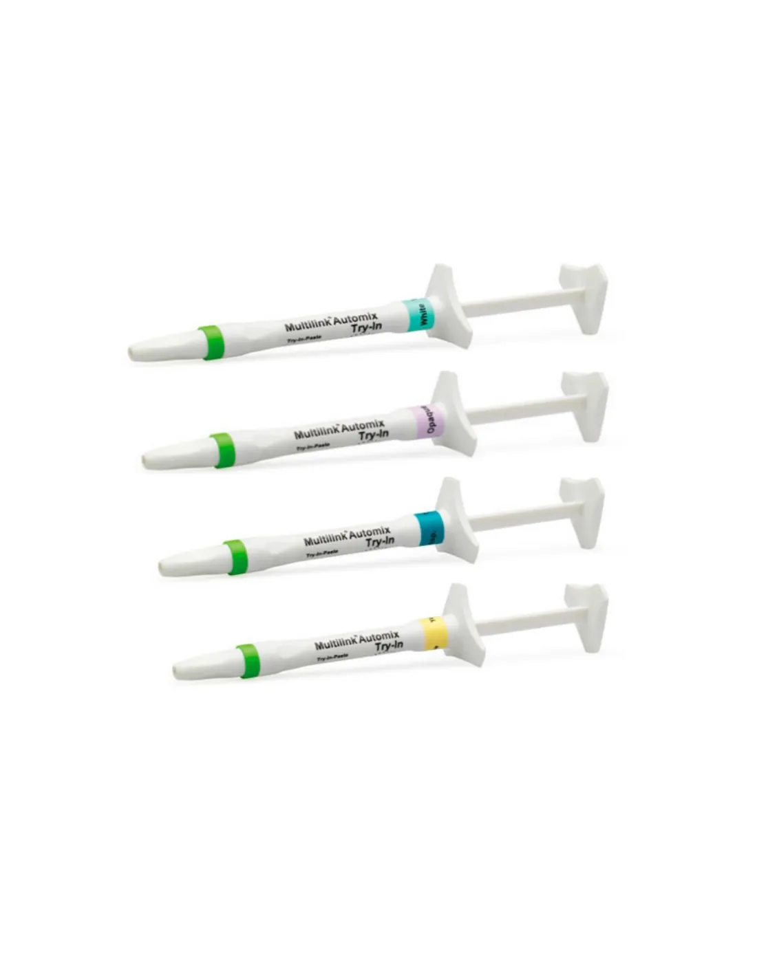Multilink Automix Try-In de Ivoclar Vivadent es parte de un sistema adhesivo de cementación para restauraciones de cerámica de silicato y óxido-cerámico p.e. IPS e.max, metal, metal-cerámica y composites.