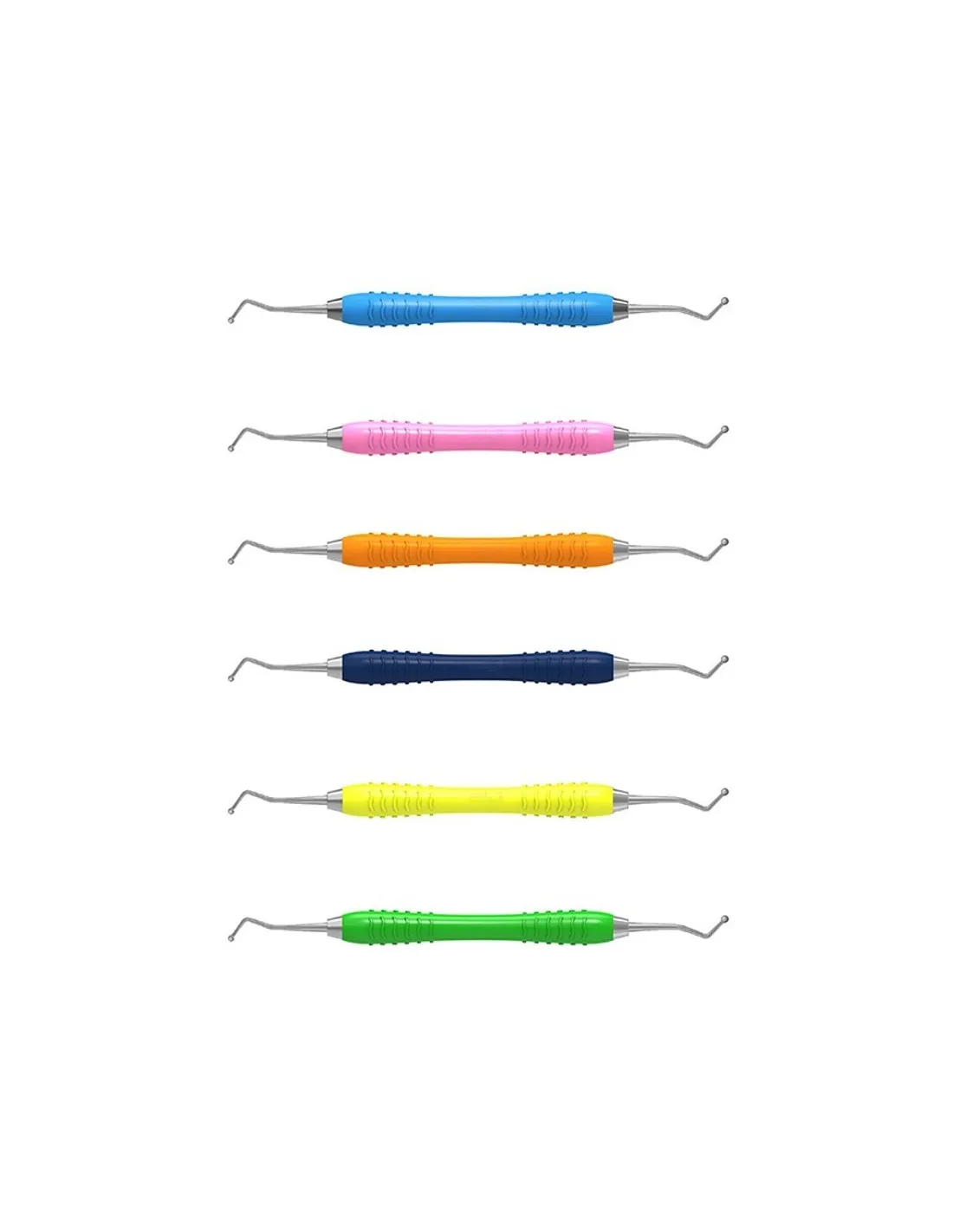 Los mangos se presentan codificados por color para permitir una fácil identificación entre los instrumentos.