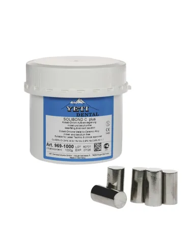 El envase de Solibond C Plus aleación CR-CO de Yeti Dental contiene 1kg.