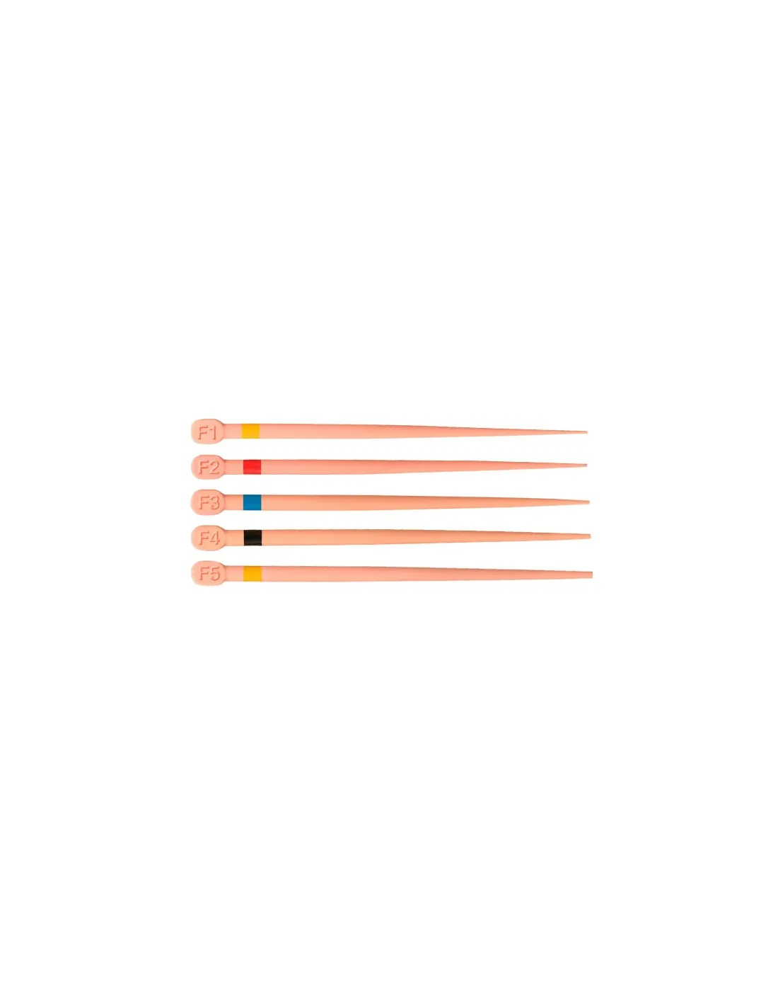 Gracias a sus puntas de conicidad variable garantiza un mejor ajuste a nivel apical. La conicidad depende del diámetro de la Gutta es decir, la F1 tiene un 7% de conicidad, F2 tiene el 8 % y F3 tiene el 9%.