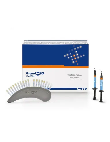 GrandioSO Flow de VOCO es un composite nano-híbrido altamente fluido, de baja viscosidad, para aplicaciones filigranas. De comportamiento de fluidez excelente siendo sumamente apto para áreas de difícil acceso y cavidades pequeñas.