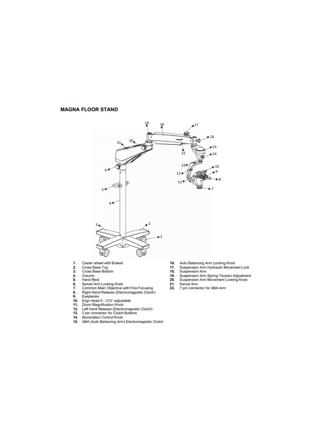 - Brazo y porta microscopio: ABA (Brazo de Balance Automático) con liberación electromagnética para un posicionamiento fácil y libre de desviaciones.