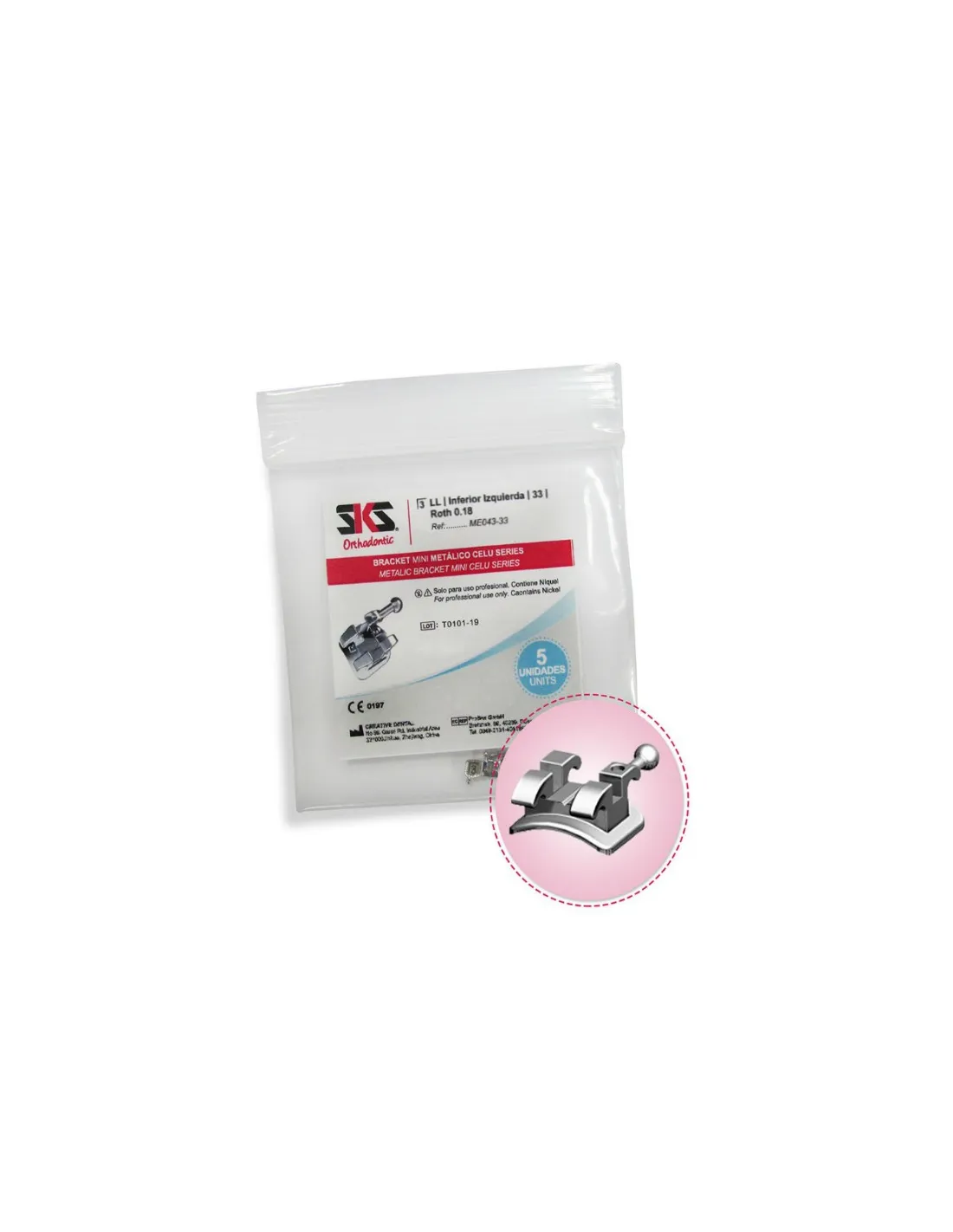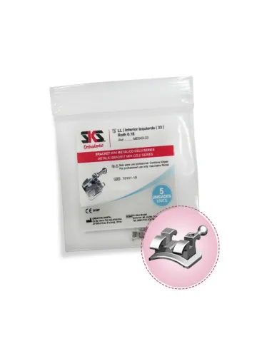 El envase de Reposición de brackets metálicos MBT 0.22 Mini Celu Serie de SKS Dental contiene 5 unidades, a elegir nº.