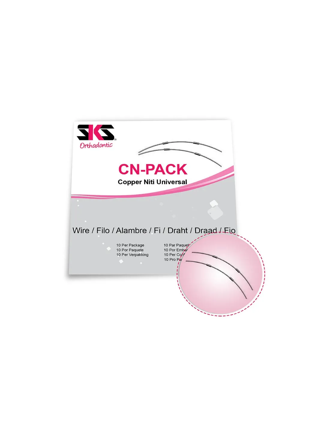 CN Pack de SKS Dental son unos arcos preformados para ortodoncia fabricados en NiTi Copper térmico, más conocido como arco con memoria.