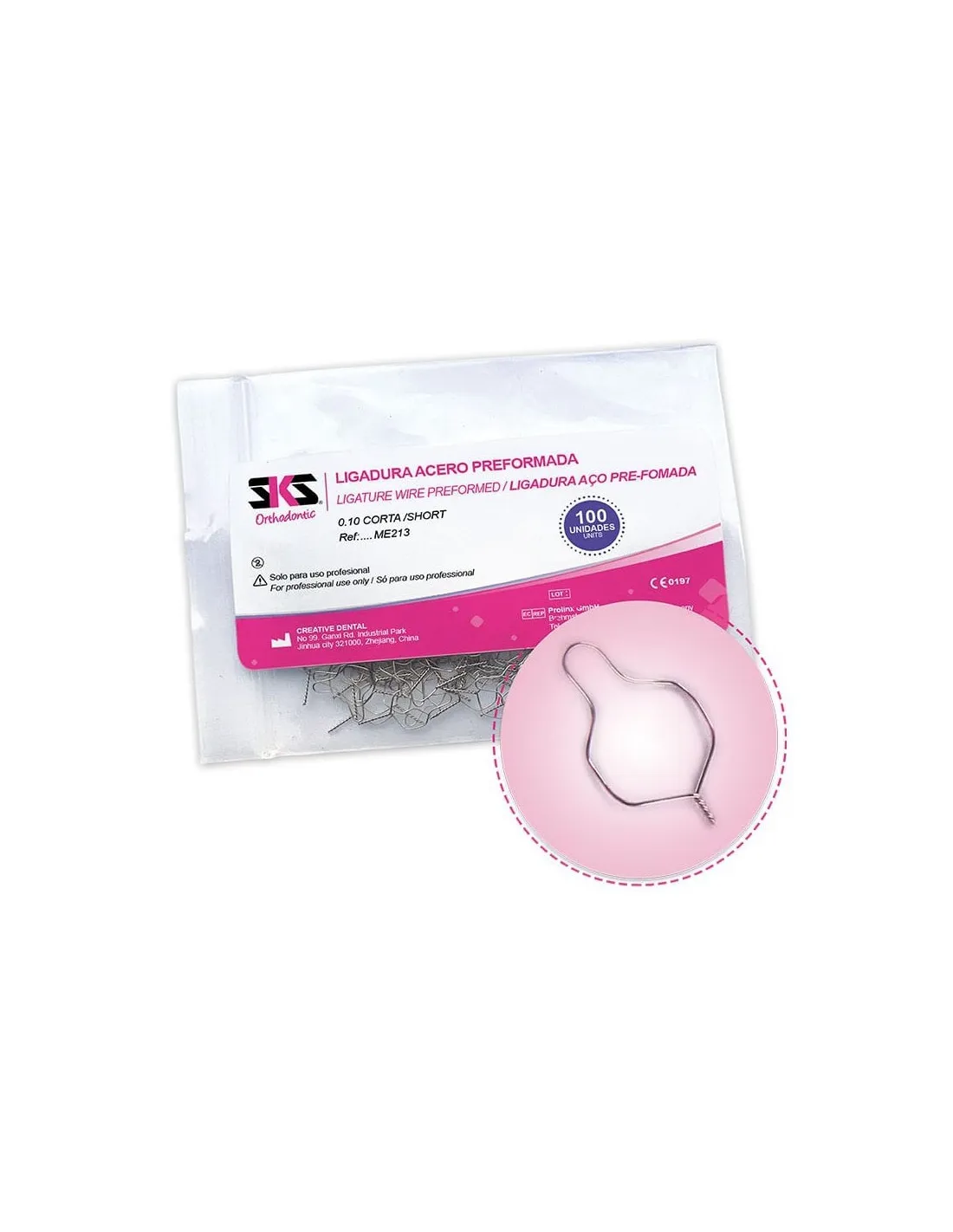 El envase de las ligaduras acero preformadas corta .010 de SKS contiene 100 unidades.
