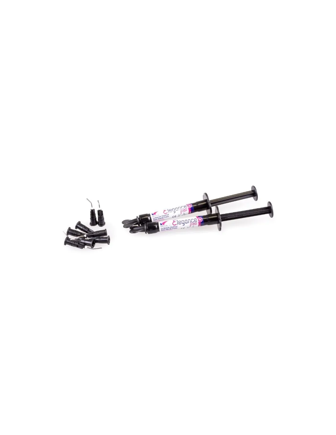 El envase de composite fluido nano-híbrido Universal Elegance Flow de Medicaline contiene 2 jeringas de 2g, a elegir tono entre los disponibles y 8 puntas aplicadoras.