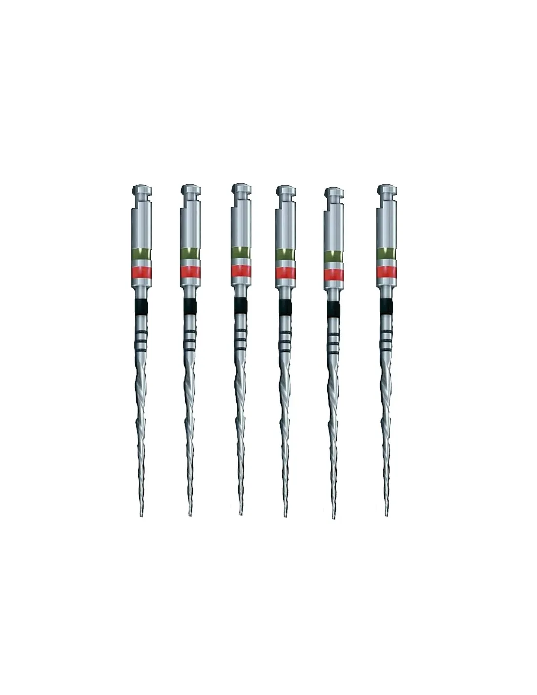 Indicadas para la remoción y preparación de conductos radiculares. Su preciso corte ofrece una rápida y eficaz remoción de las virutas gracias a su núcleo con conicidad variable y a unos espacios más amplios para su eliminación.