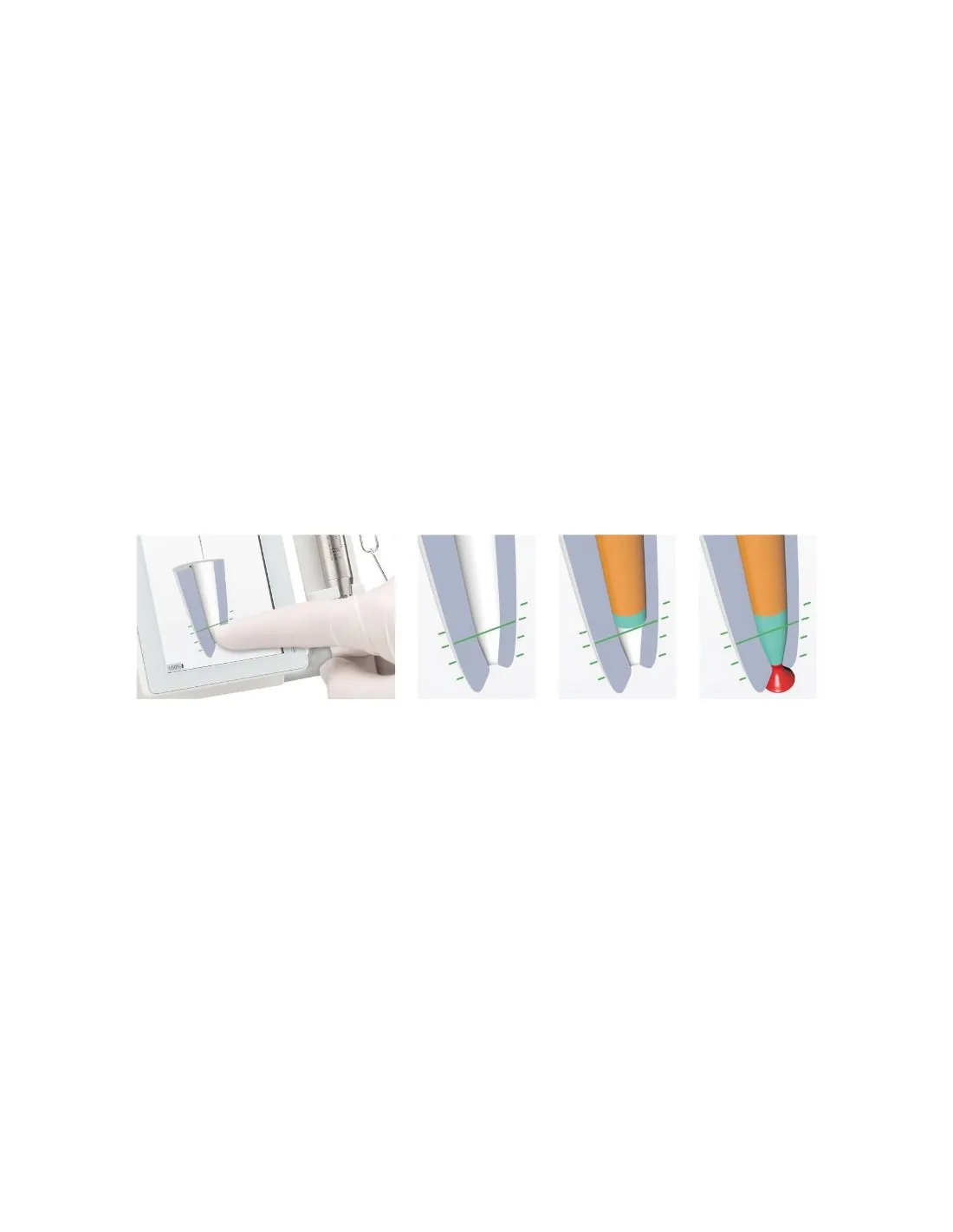 El localizador de ápices integrado permite determinar de forma precisa y en tiempo real la longitud, pudiendo el profesional controlar en todo momento la posición de la lima. Este dispositivo se puede usar sin el motor endodóntico para determinar la longitud durante la preparación con limas manuales y clips para limas.