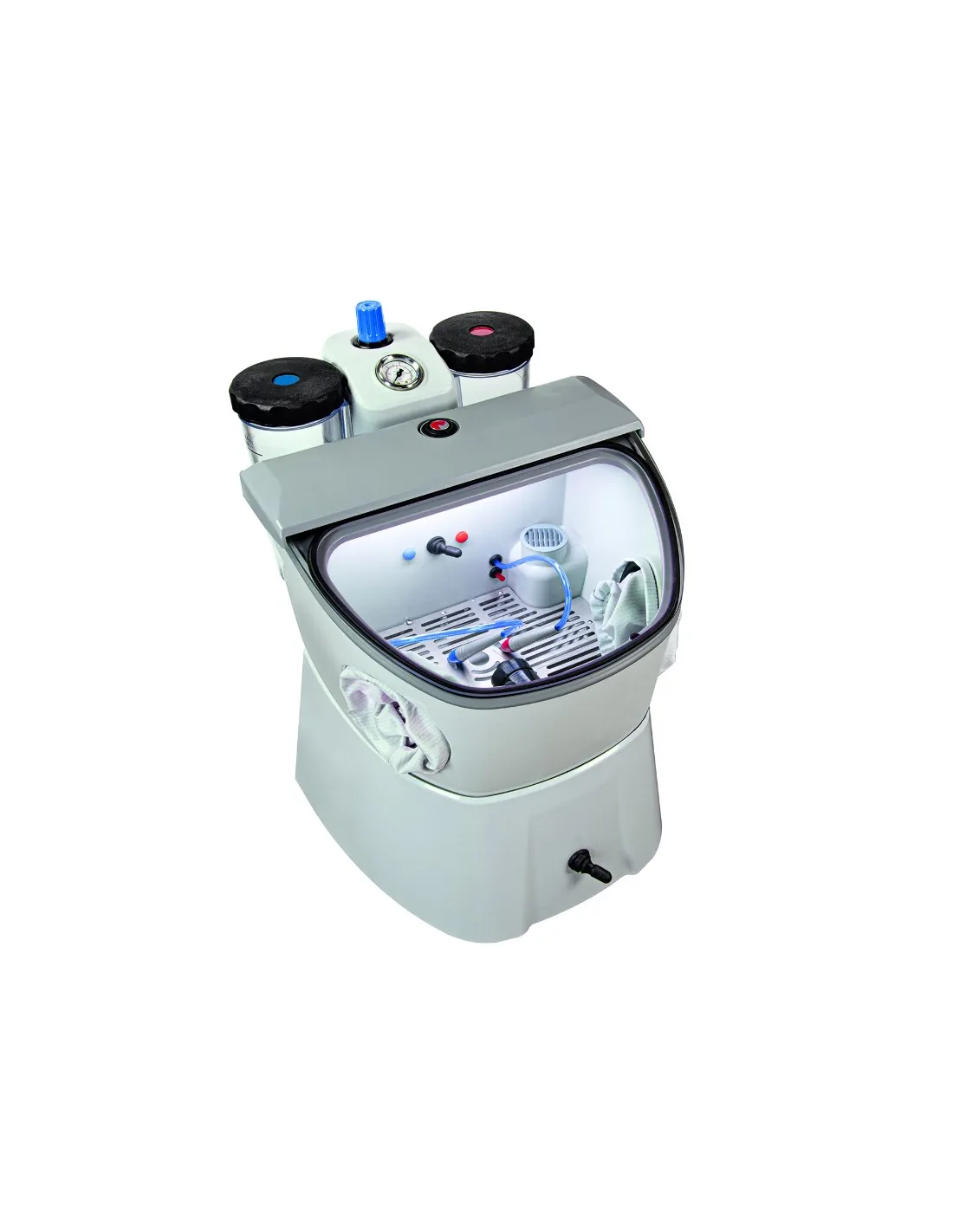La chorreadora de arena de Mestra, Eclipse II-T, diseñada y fabricada en España, posee una cabina fabricada totalmente en ABS, logrando unas formas más ergonómicas y mayor comodidad de trabajo.