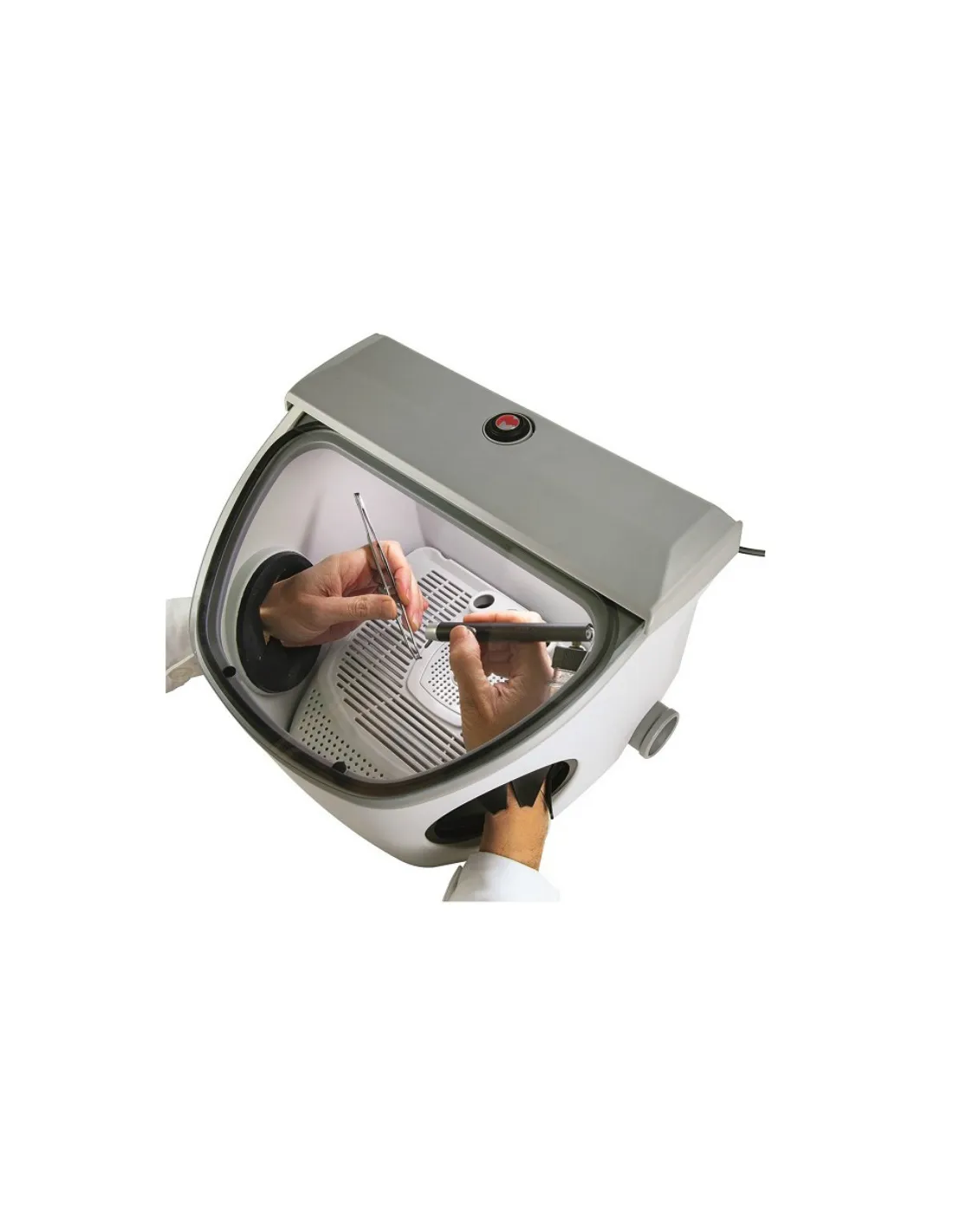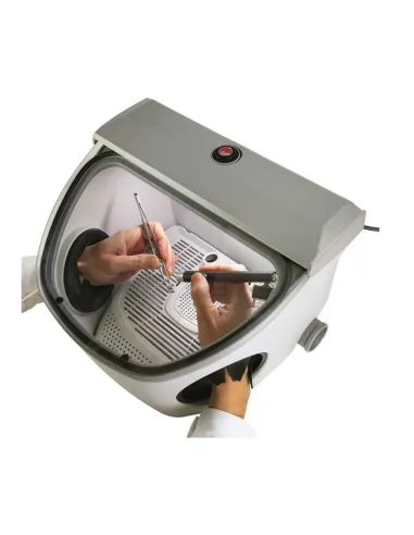 Su compacto tamaño (275x360x330mm) hace que sea una cabina de repasado idónea para un laboratorio dental.