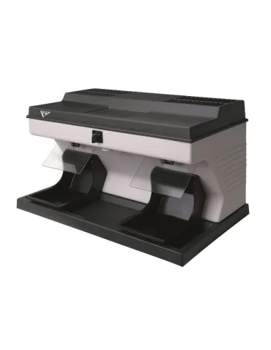Fabricado para su empleo en el sector de la prótesis dental, dispone de un sistema de aspiración y filtrado, un sistema de iluminación y dos pantallas protectoras de policarbonato.