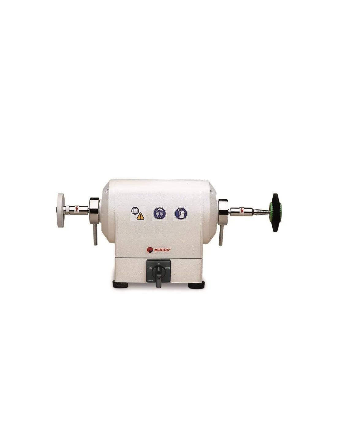 Diseñada y fabricada en España por Mestra, R-080162 es una electropulidora para laboratorio dental protésico especialmente diseñada para la técnica de pulido y esmerilado de metales, resinas, etc bien sea en seco o húmedo.