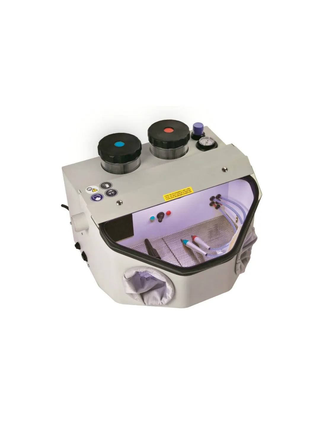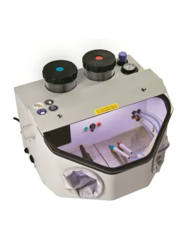 Diseñada y fabricada en España, la arenadora Constellation Practic de Mestra es una cabina de chorreado de arena que presenta un robusto chasis metálico pintado con pintura epoxy, de fácil limpieza.