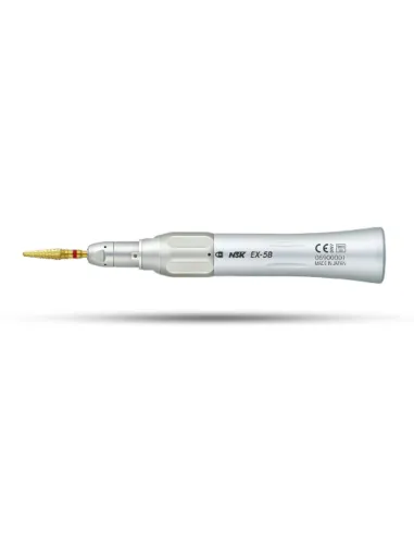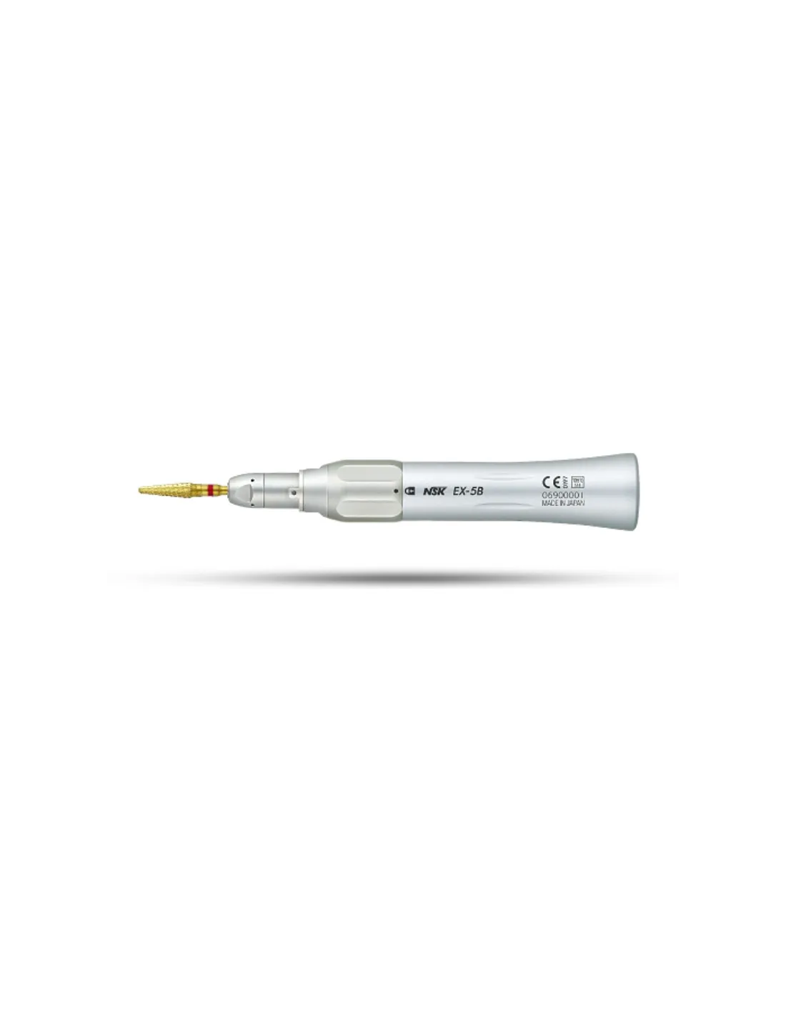El instrumento rotatorio EX-5B serie EX de NSK es una pieza de mano recta, sin luz, de transmisión reducción 4:1 y alcanza una velocidad máxima de 10.000min-1.