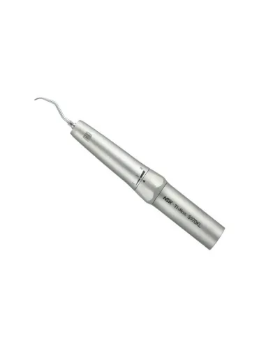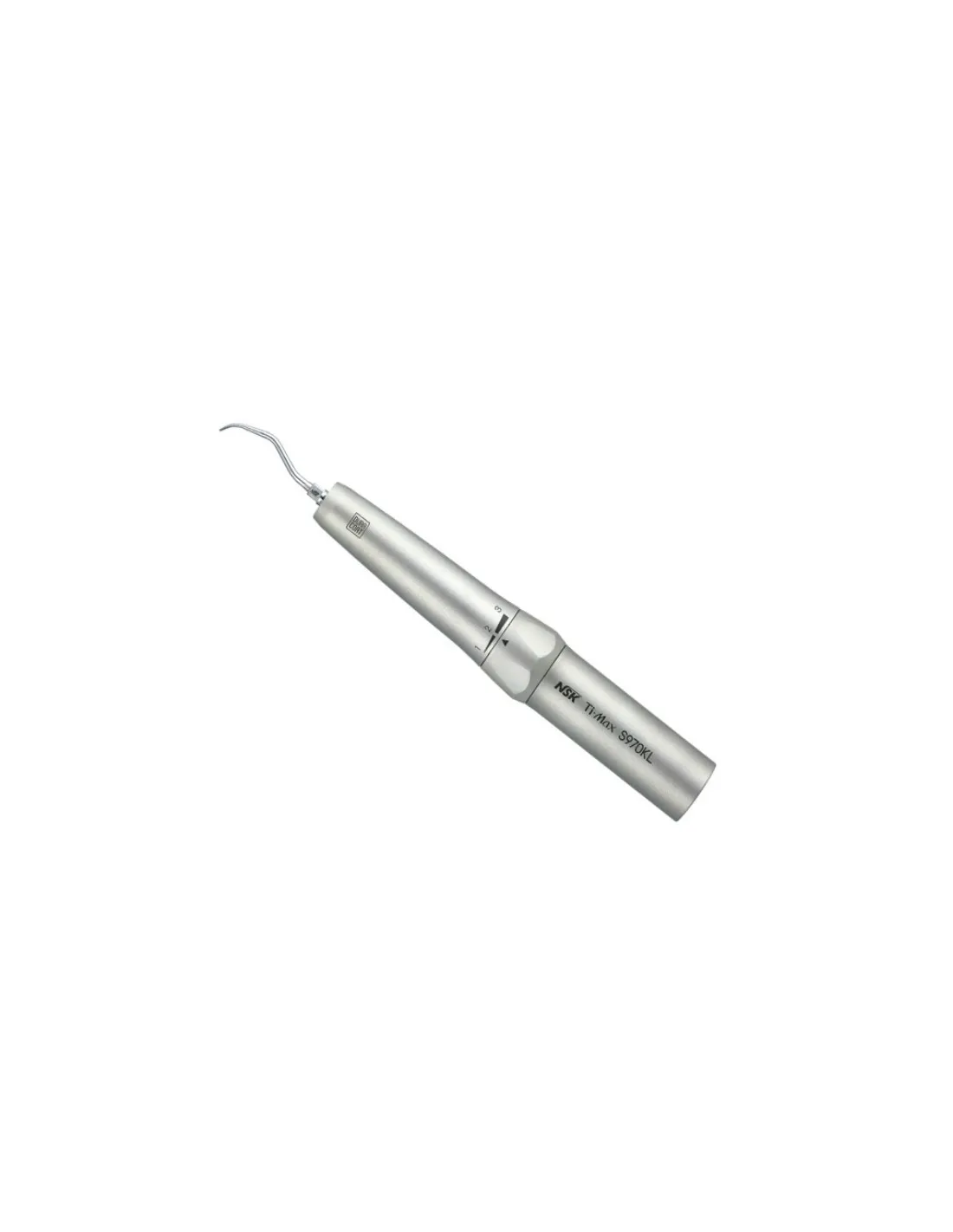 El scaler S970KL Ti-Max de NSK, es un ultrasonido neumático fabricado con cuerpo de titanio macizo pero ligero, con un recubrimiento Duracoat, a prueba de arañazos. Este material logra una superficie más agradable al tacto y fácil de manejar.